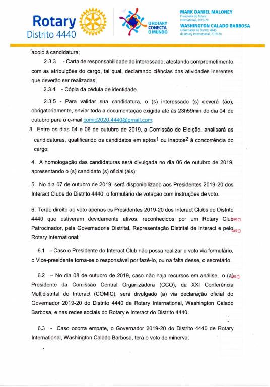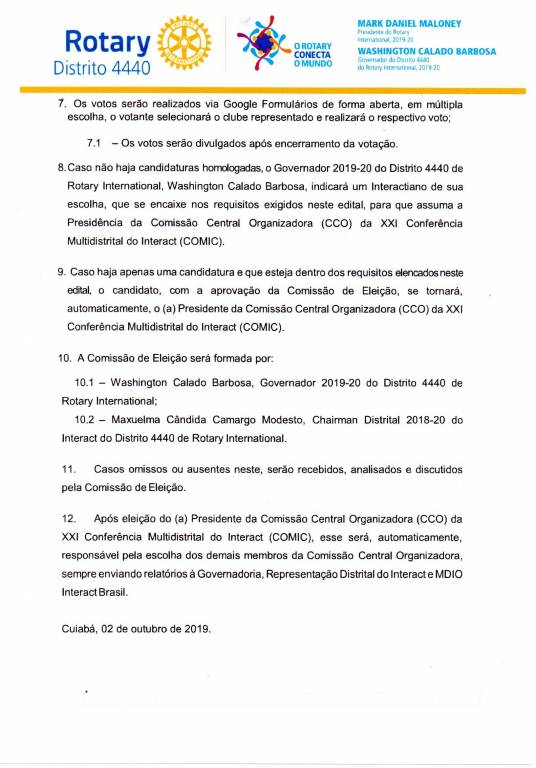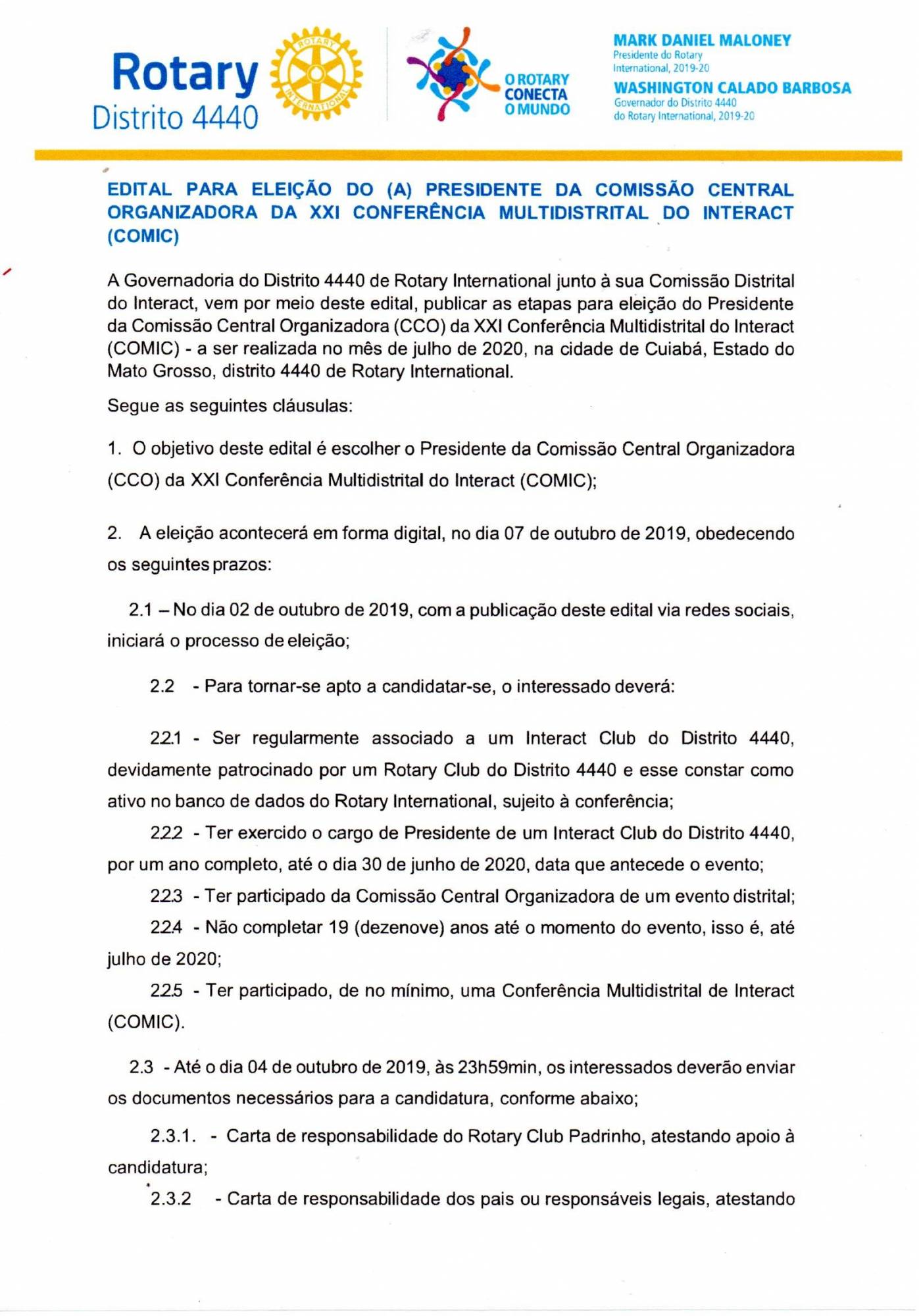 EDITAL PARA ELEIÇÃO DO PRESIDENTE DA COMISSÃO CENTRAL ORGANIZADORA DA XXI CONFERENCIA MULTIDISTRITAL DO INTERACT (COMIC)