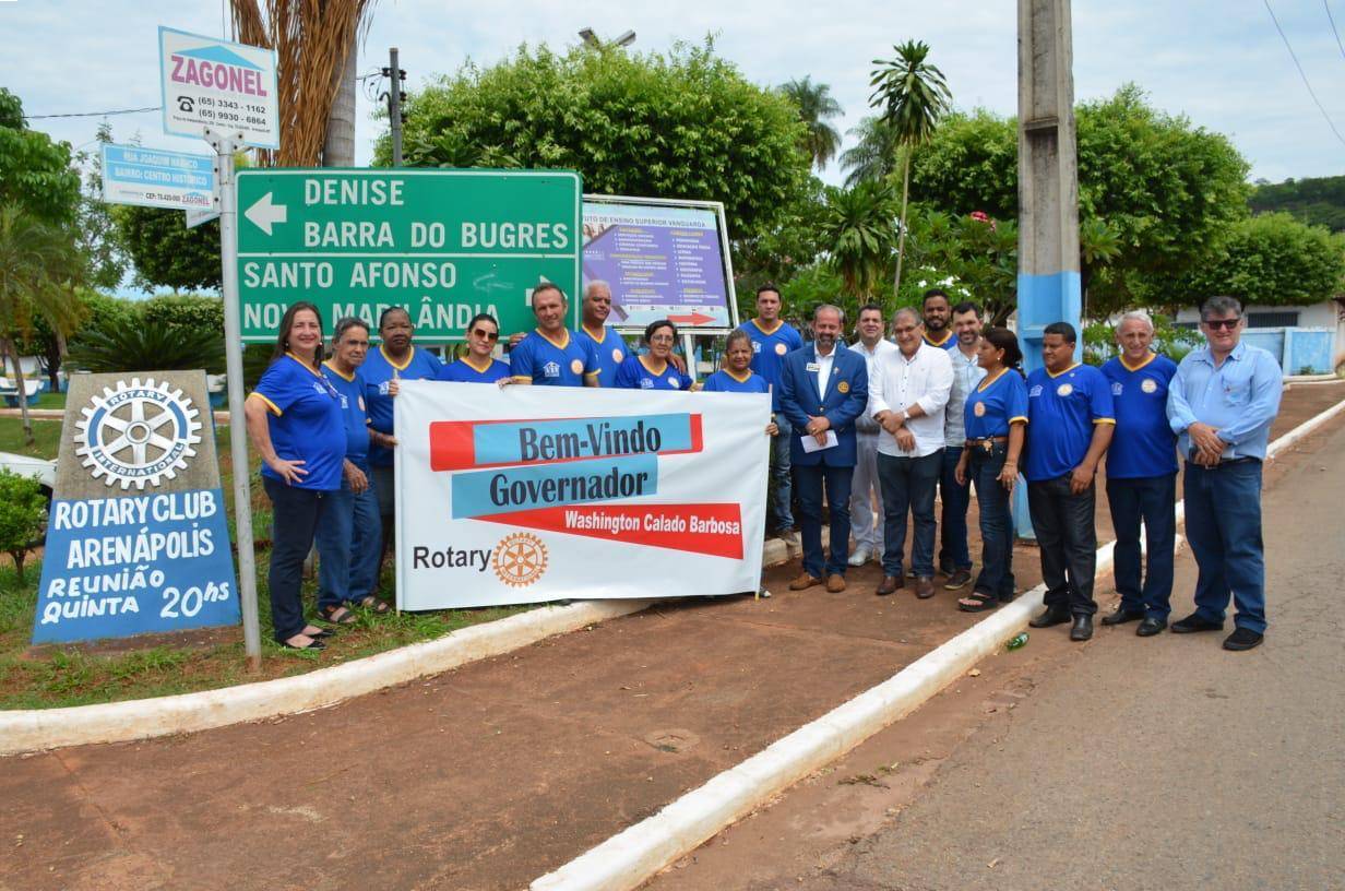 A Família Rotária do Rotary Club de Arenápolis, no médio norte mato-grossense, recebeu nesta segunda feira, 04 de novembro, a visita do Governador do Distrito, companheiro Washington Calado Barbosa. Às 9h15, na entrada da cidade, uma expressiva comitiva de companheiros liderados pela Presidente Rosinha Santos de Carvalho, recepcionou o Governador. Também, se fez presente na ocasião, o prefeito municipal, Sr. José Mauro Figueiredo, de cujas mãos do qual, Washington recebeu o Decreto de “Hóspede Oficial” do município de Arenápolis. No local foi plantada uma muda de árvore da espécie Oiti, como símbolo da visita.